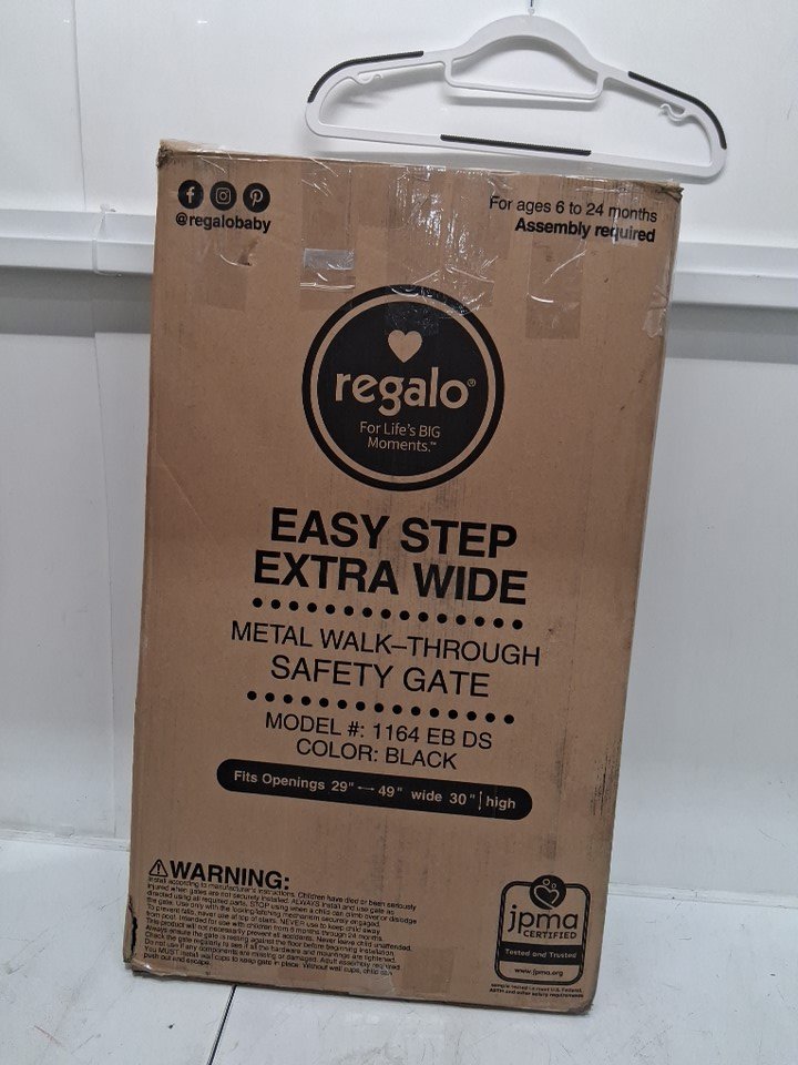 REGALO EASY STEP EXTRA WIDE METAL SAFETY GATE - 30" x 29" - 49" - BLACK (MODEL: 1164EBDS)