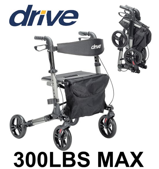 Drive Medical Lightweight Foldable Compact Folding Rollator with storage bag and cane holder- 8" wheels - Black - (Model: RTL10288BK)