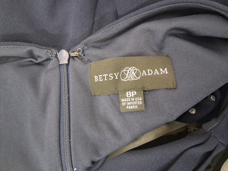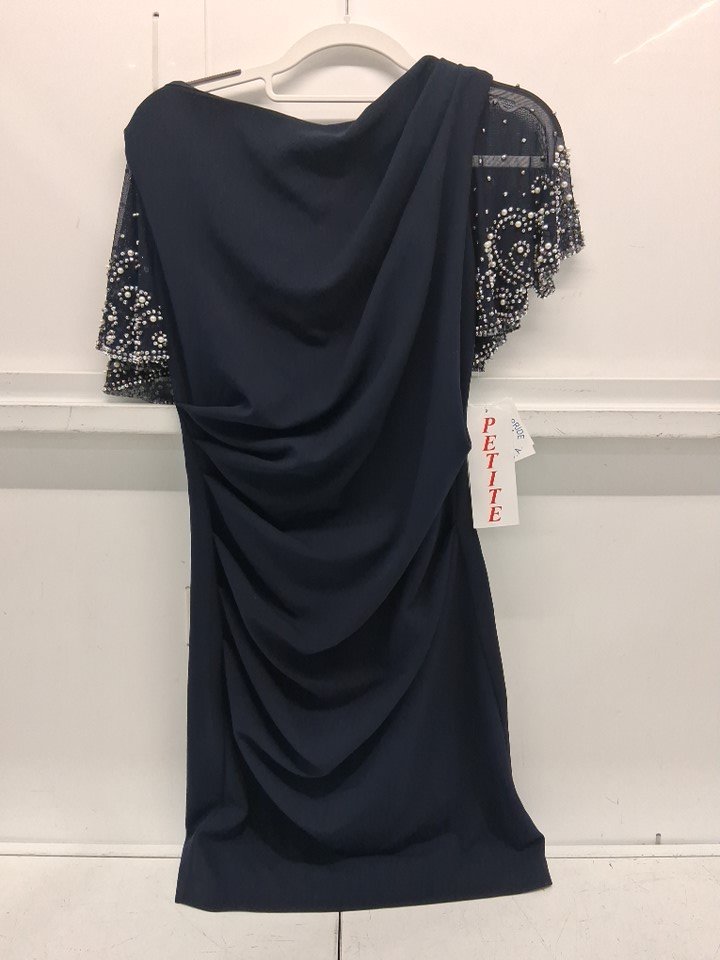 WOMENS Betsy & Adam Short Ruched Crepe W/Beaded Flutter Sleeve - 8 Petite - NAVY (STYLE: A24004P)