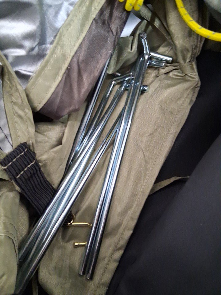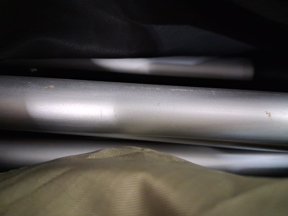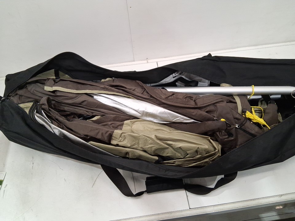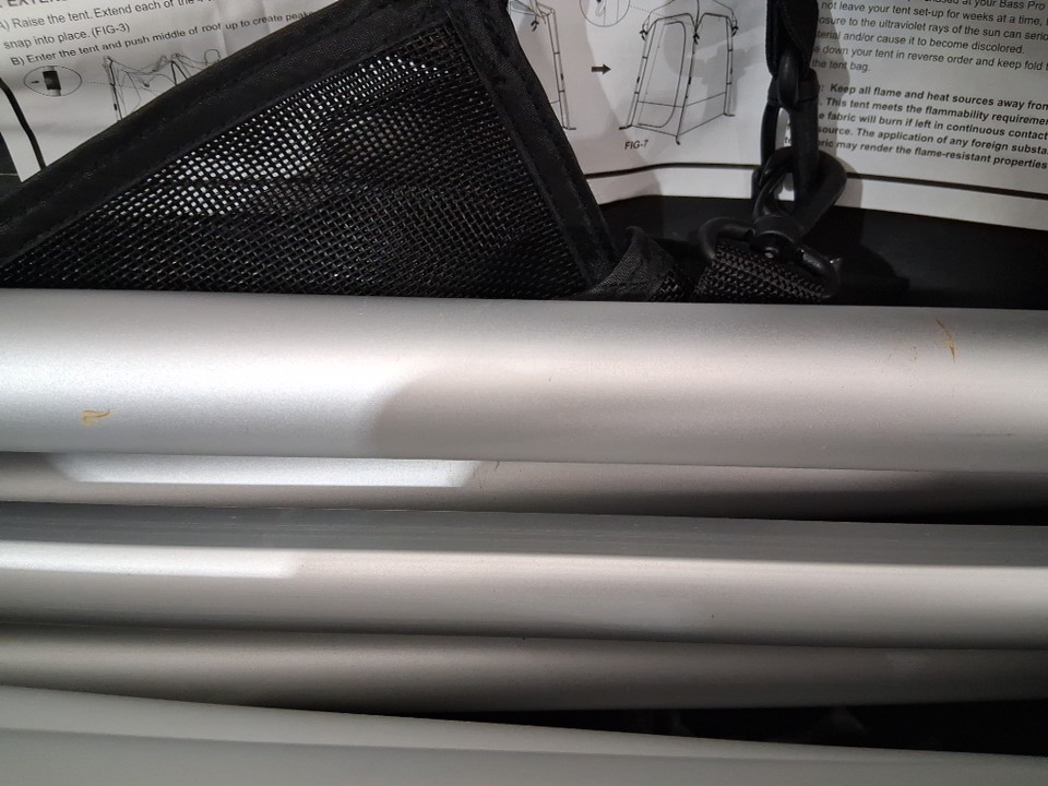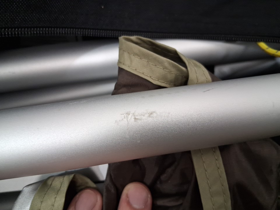 There are some bits of dead grass/outdoor debris on the exterior of the shelter as well as some scuffs and light rust marks on the legs indicating some previous usage, but no major damage or other issues are visible - see photos.