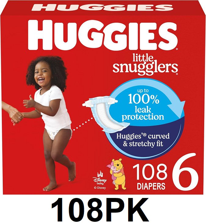 108PK Huggies Little Snugglers baby diapers - size 6 - Disney (35LBS+)