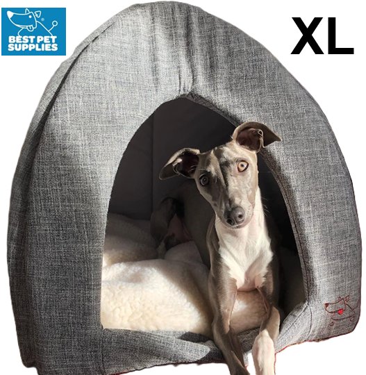 best pet supplies soft pet tent style bed - 19"x 19"x 19" - grey linen - (model: TT608T-XL)