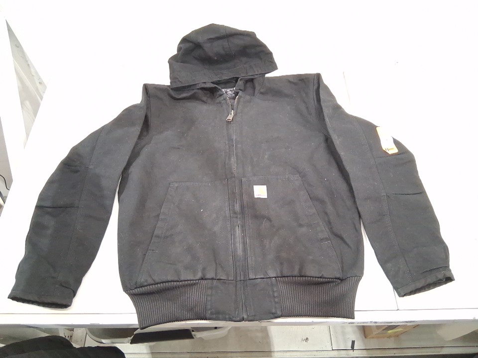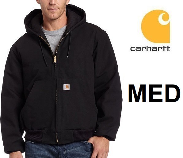MEN'S CARHARTT LOOSE FIT FIRM DUCK INSULATED FLANNEL LINED HOODED ACTIVE JACKET - MEDIUM - BLACK (STYLE: 0J0140-M)