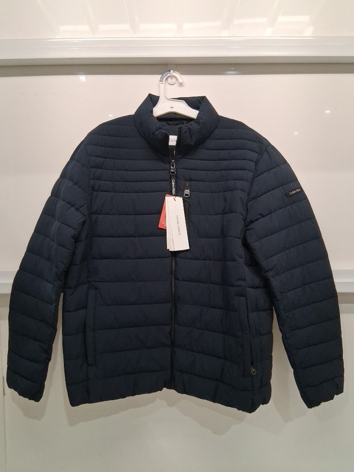 MENS CALVIN KLEIN LIGHTWEIGHT WATER RESISTANT PACKABLE DOWN PUFFER JACKET - LARGE - NAVY (STYLE: CM155900)