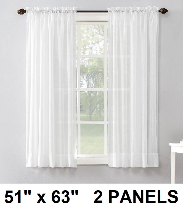 (2 Panels) Mainstays Crushed Voile Rod Pocket Sheer Curtain Panels - 51" x 63" - White
