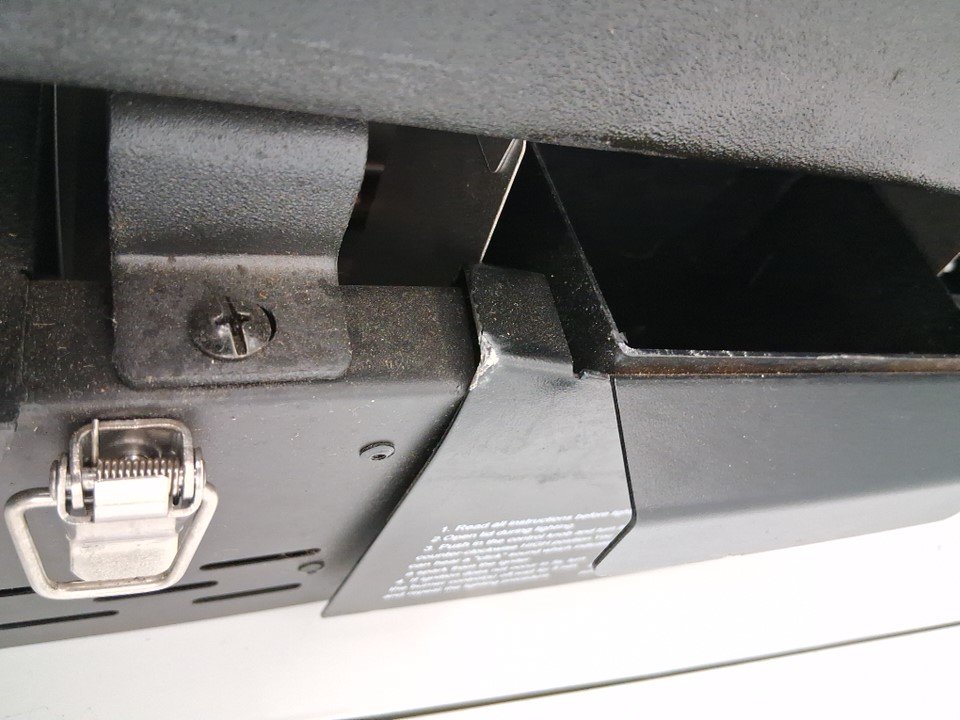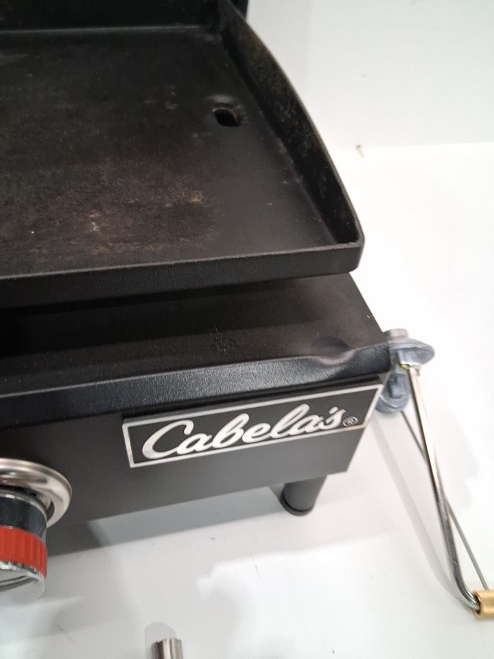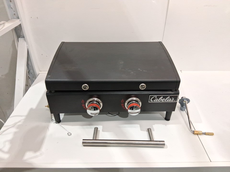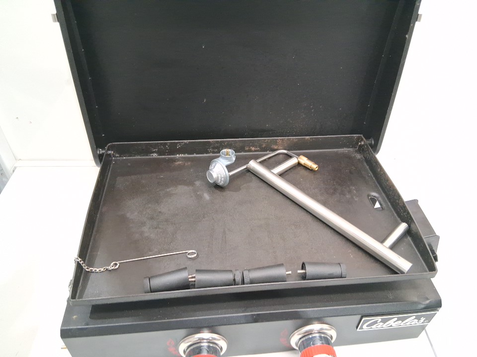 Does not come with a gas hose, as well the frame has a dent on the bottom front left and some light paint scraping As well, the handle is not attached but could likely be crazy glued back on Grease and char marks from use