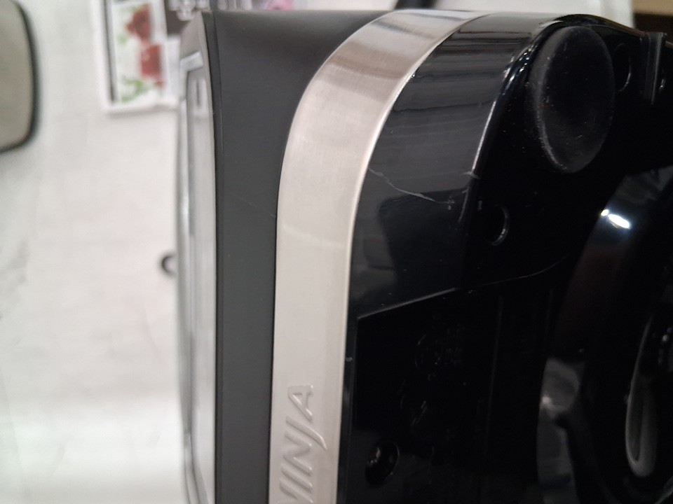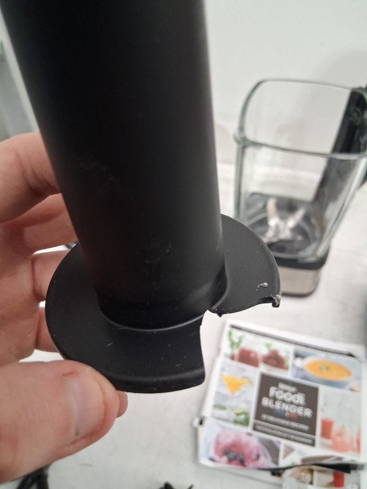 There is one scuff mark near the bottom of the blender and one of the plastic attachments had part of its base broken off due to shipping. Tested for basic power.