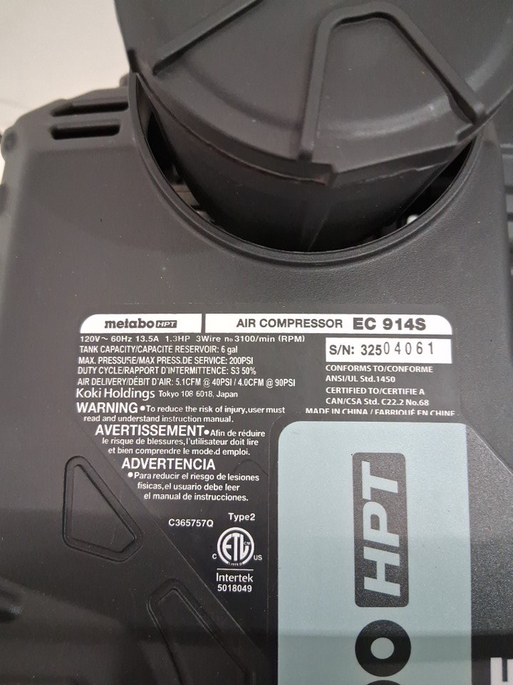 METABO hpt the tank pancake air compressor - 200 psi- 1.3hp - 6 gal - grey/black (model: ec914s)