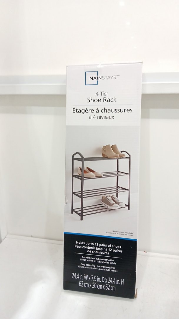 MAINSTAYS 4-TIER ENTRANCE WAY SHOE RACK - HOLDS 12 PAIRS - BLACK