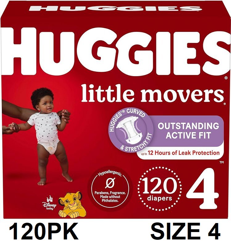 120PK HUGGIES LITTLE MOVERS DISPOSABLE BABY DIAPERS - SIZE 4 - FOR BABIES 22LBS-37lbs - DISNEY LION KING