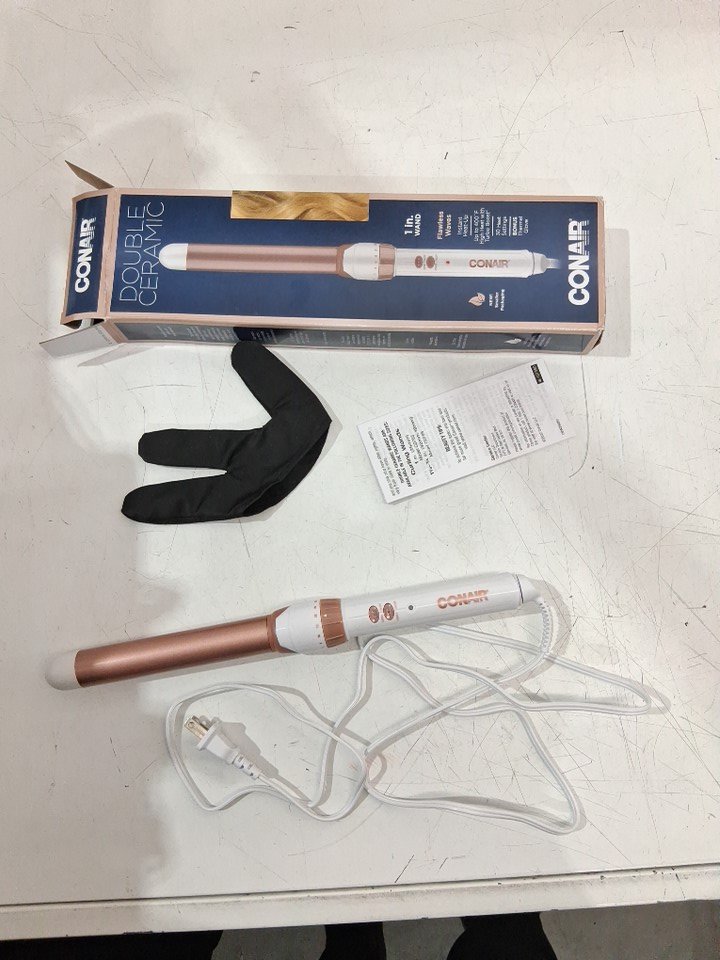 CONAIR DOUBLE TURBO HEAT CERAMIC FLAWLESS WAVES CURLING WAND HAIR STYLER - 1" - WHITE/ROSE GOLD (MODEL: CD705GNC)