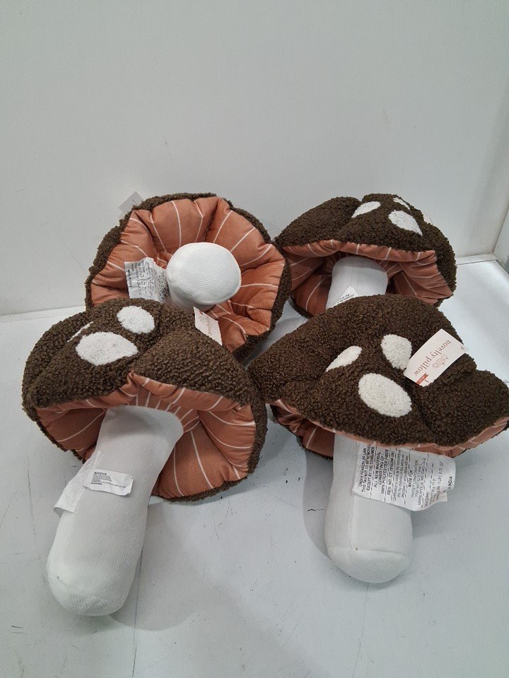 4pk Target novelty Mushroom Pillows - 11" x 11" - brown/white/tan