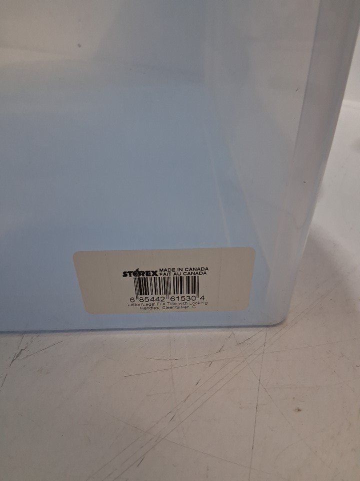 storex plastice file storage tote box bin with snap on lid - legal/letter - blue / clear
