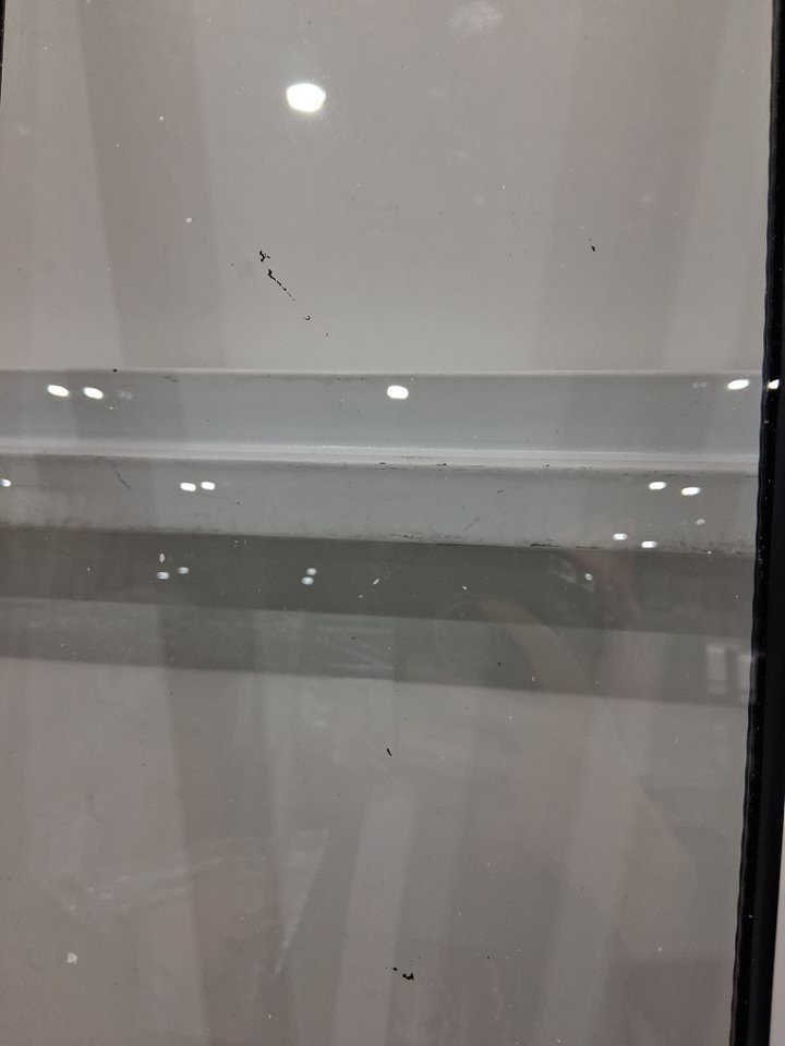 There are some scratch marks on the door, black spots on the glass and dirt on attachment pieces, see photos.