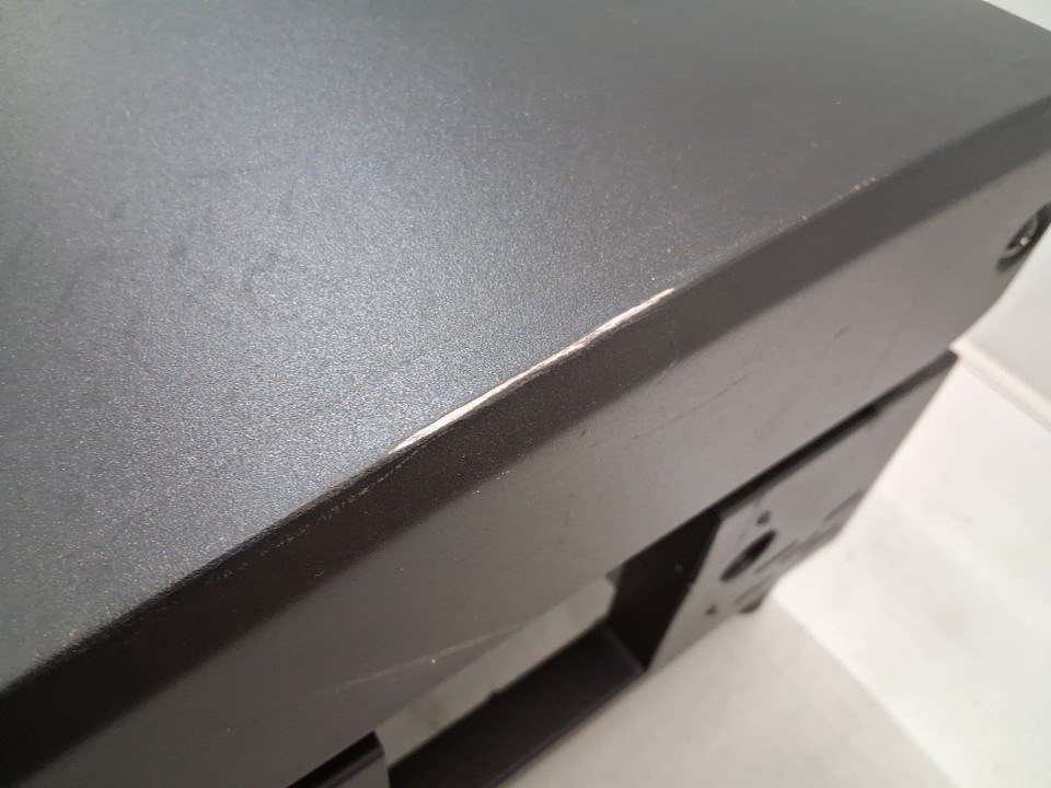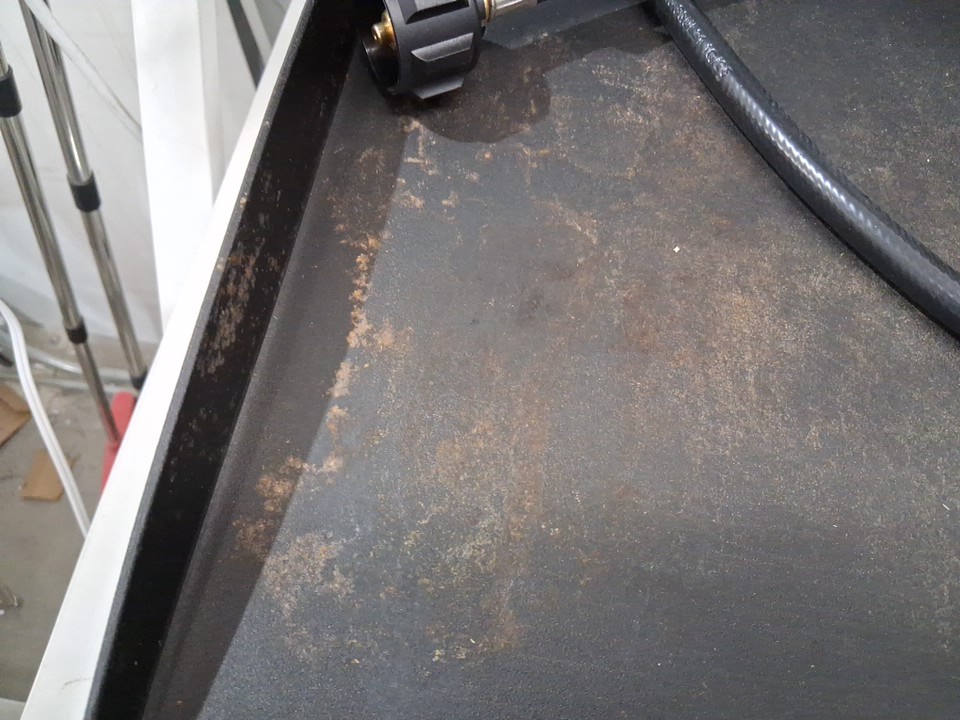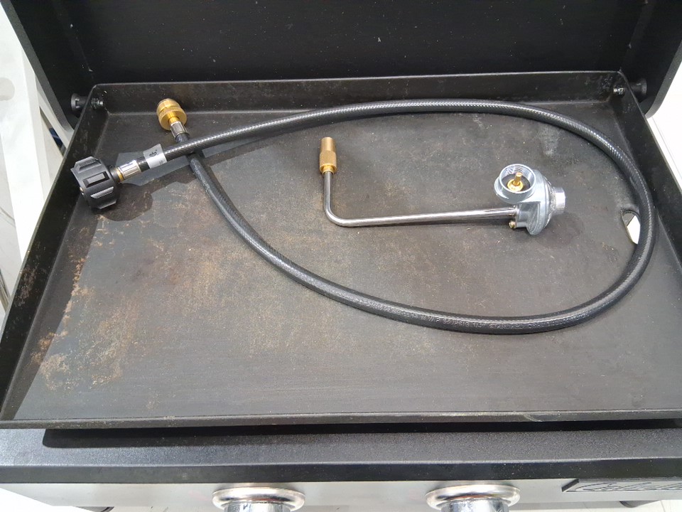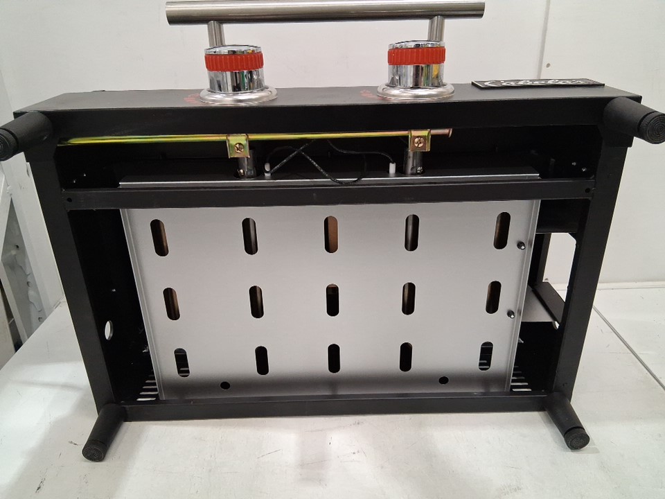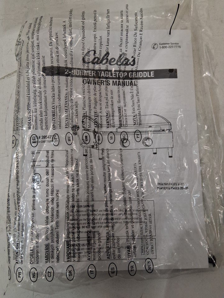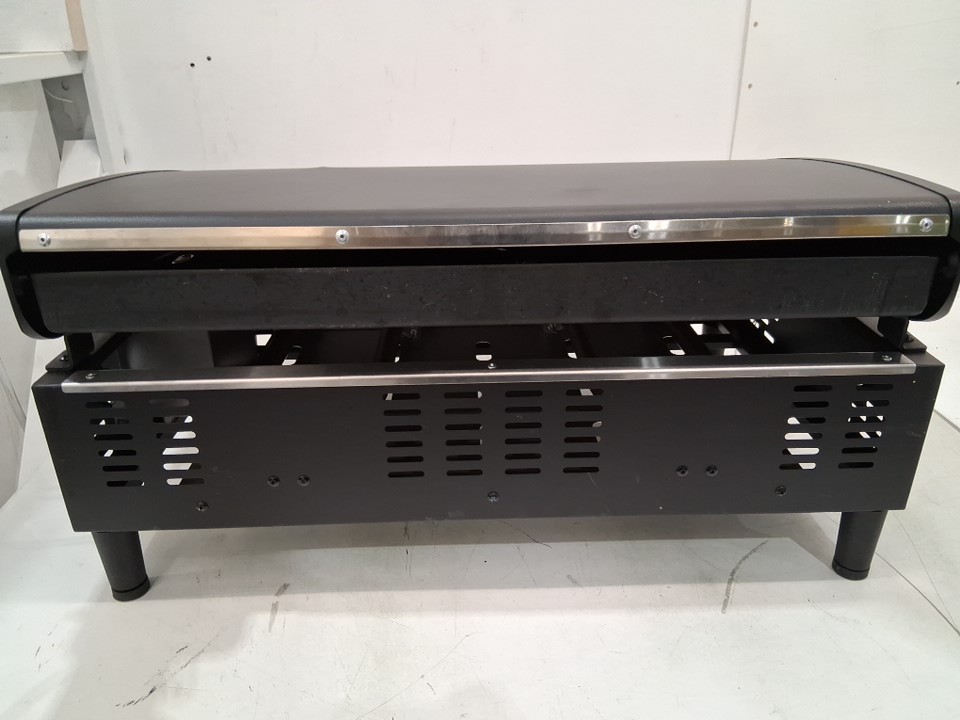 There are some scorch marks/grease stains left on the cooking surface indicating some prior use. There are also some dirt stains and light scuffs on the surface of the hood and on the left side of the grill, either from prior use or shipping without any packagine - see photos. Outside of these issues, the grill appears to be in good condition without any notable damage that would impede function, though we are unable to fully test its function within our facility.