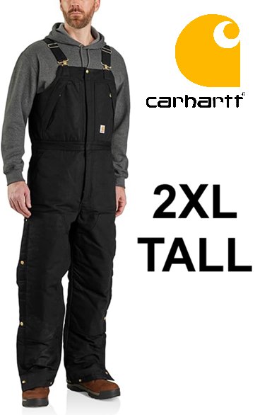 mens carhartt Loose Fit Firm Duck Insulated Biberall - 2xl tall - black (style:or6682-m)