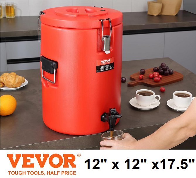 VEVOR Stainless Steel Insulated Beverage Dispenser - 4.5GAL - 12"L x 12"W x 17.5" - red (model: wns-4)