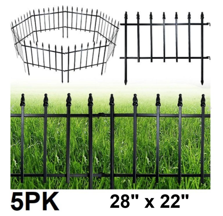 5Pk Arifaro Decorative Metal Garden Fence Panels - 28" x 22" each - Black
