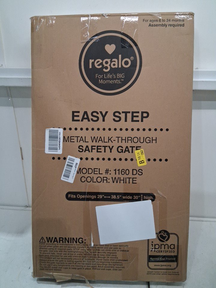 REGALO EASY-STEP METAL WALK-THROUGH SAFETY GATE - 30" x 29'' to 38.5'' - WHITE - (MODEL: 1160DS)