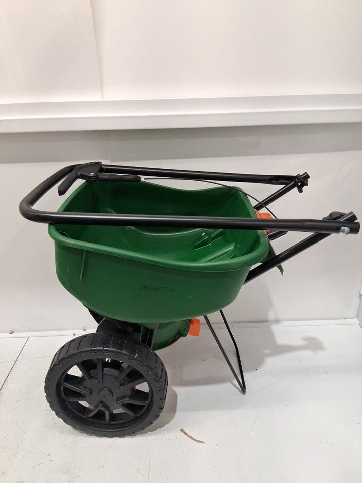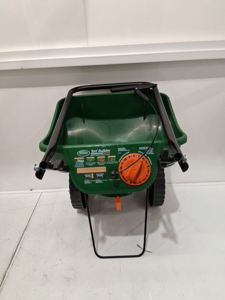 scotts foldable turf builder, edgeguard mini broadcast spreader/seeder - 5000 sq ft - green/black (model: lb15267)