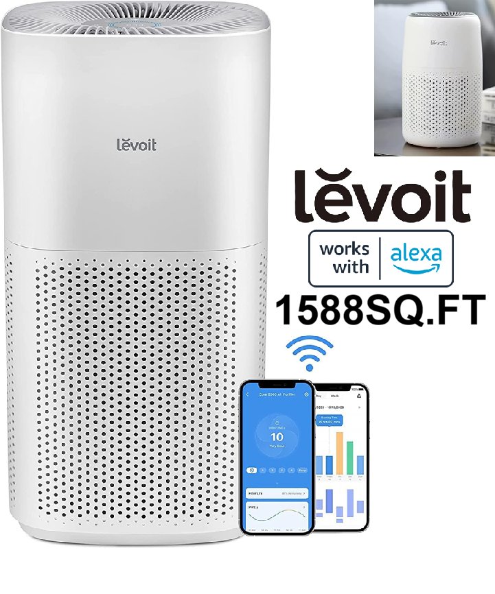levoit smart Air Purifier for Large Rooms mart WiFi Alexa Control - covers 1588sq.ft - white (model:lap-c601s-wca)