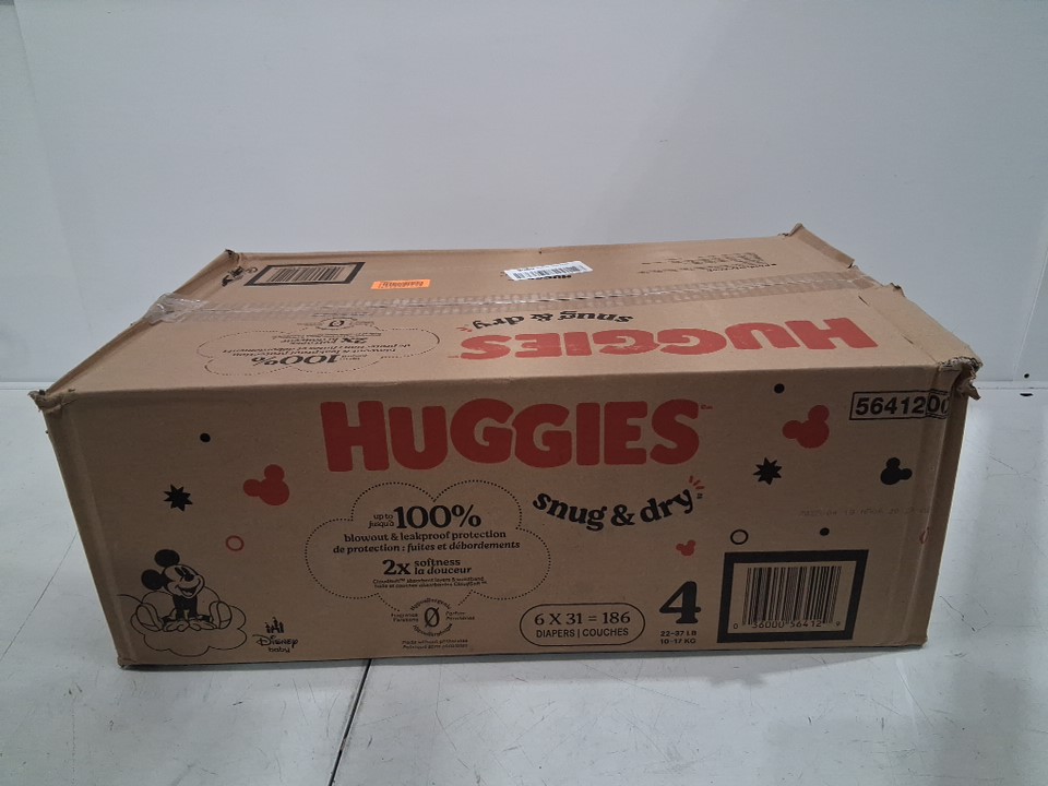 186pk huggies snug and dry diapers - size 4 - 22lb to 37lb - disney mickey mouse