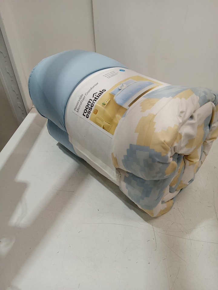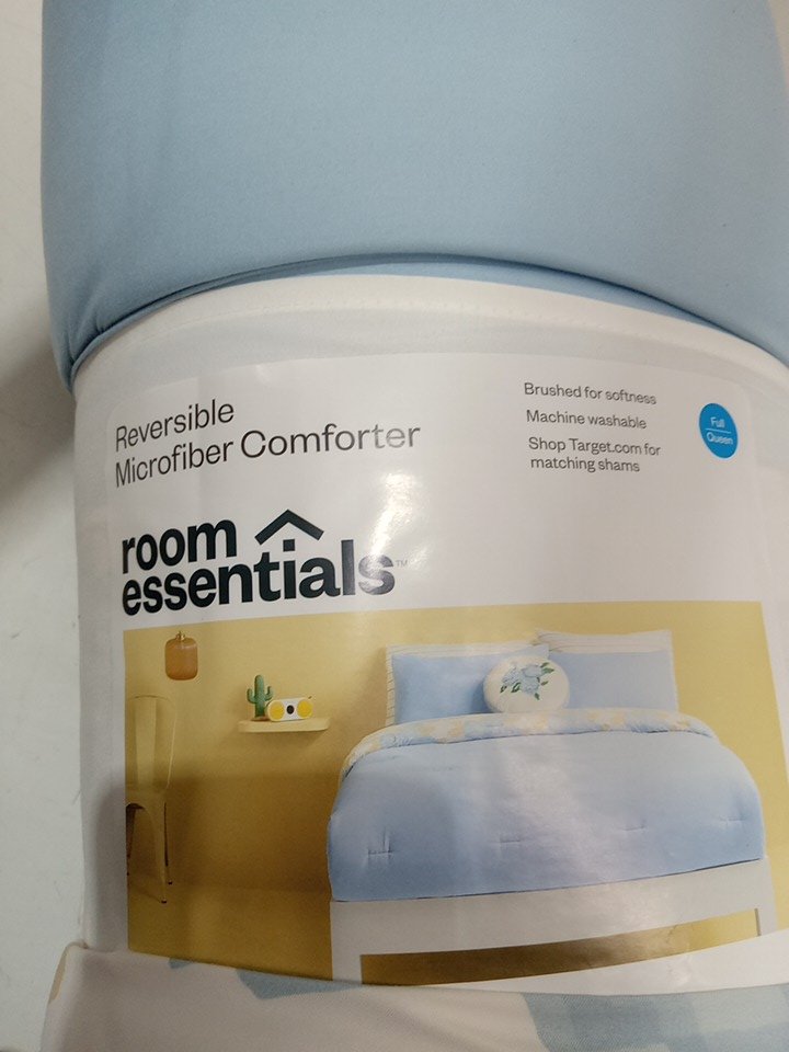 ROOM ESSENTIALS REVERSIBLE MICROFIBER COMFORTER - FULL/QUEEN - LIGHT BLUE/FLORAL