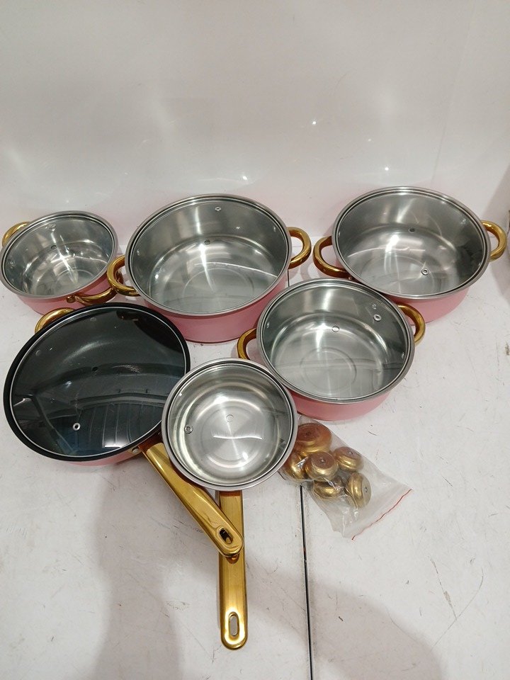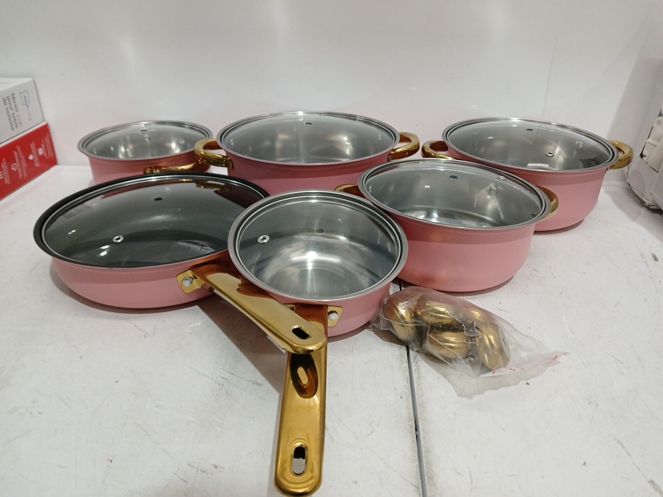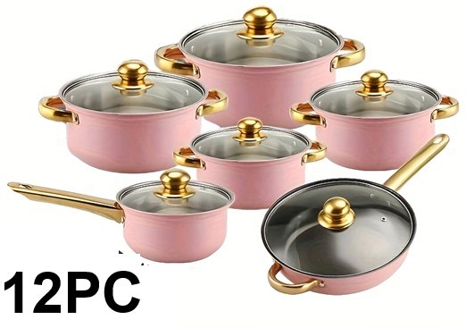 12pc stainless steel non stick cookwear set - pots and pans with lids - pink/gold