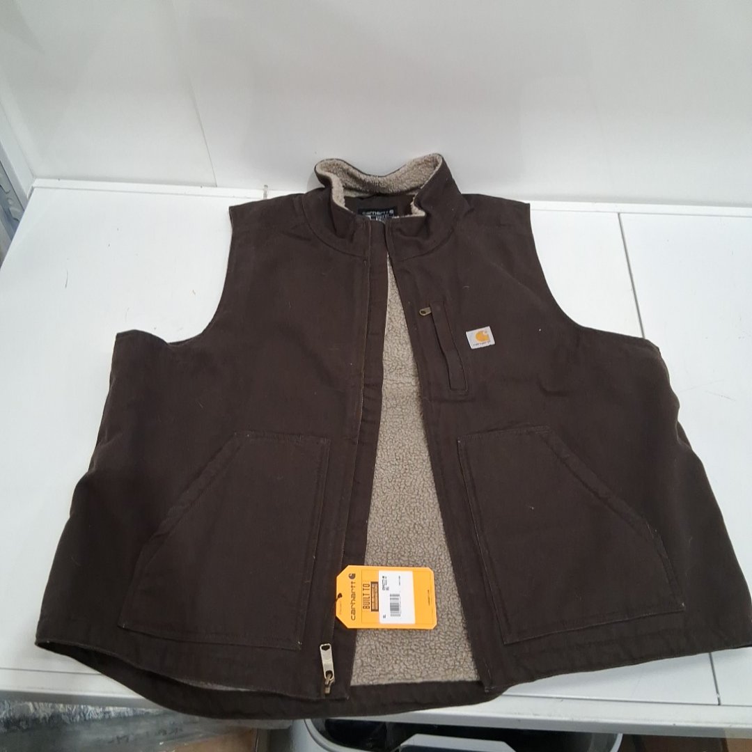 MENS CARHARTT LOOSE FIT WASHED DUCK SHERPA LINED VEST - extra LARGE - DARK BROWN (STYLE: OV4277-M)