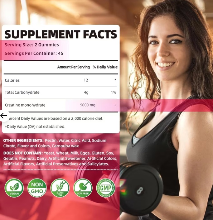 2PK (90 Gummies) Happyummmm Creatine Monohydrate to boost strength training - 5000mg - strawberry