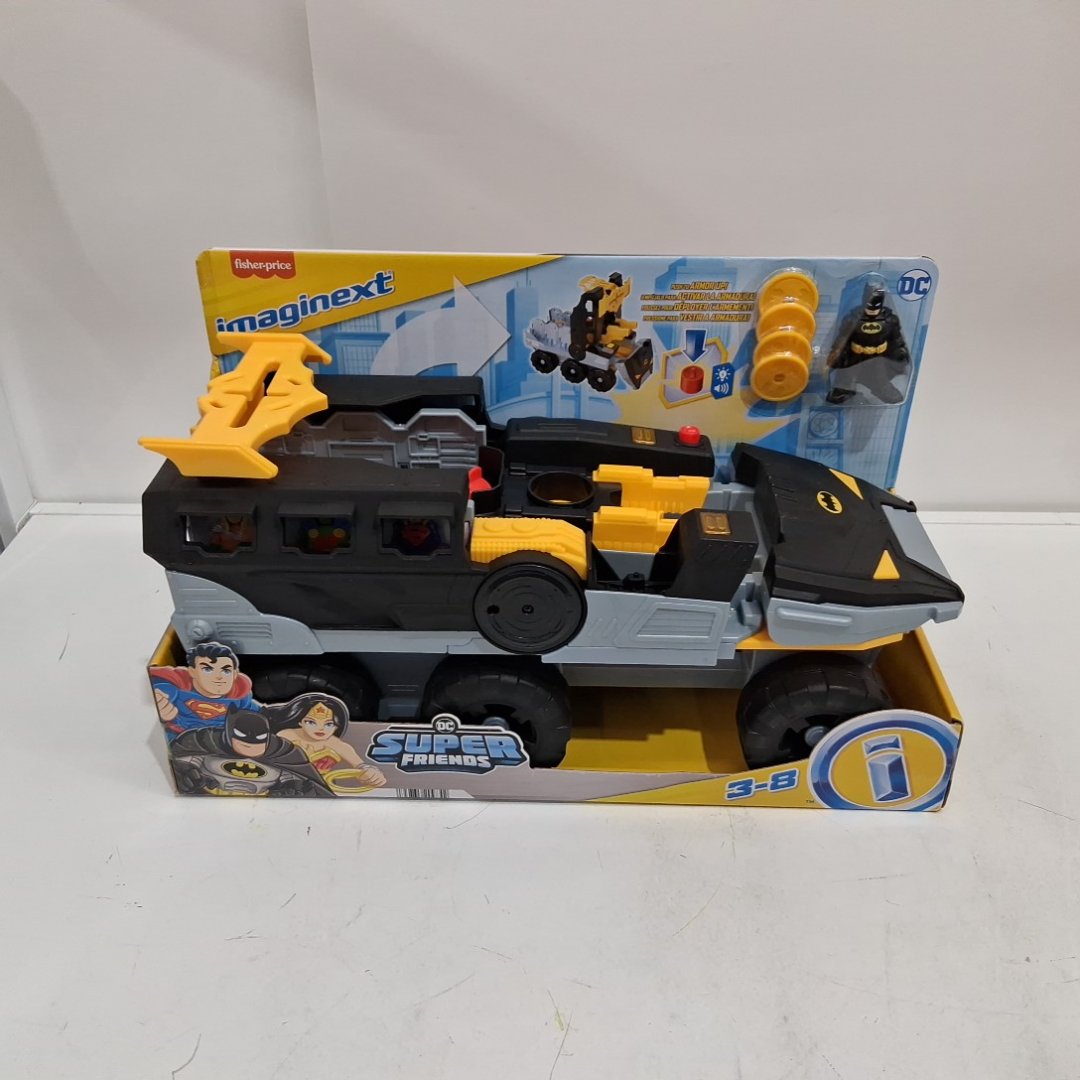Fisher-Price Imaginext DC Super Friends Batman Transforming Bat-Tank with Lights Sounds Figure & Projectiles - black/yellow (model: hvy04)