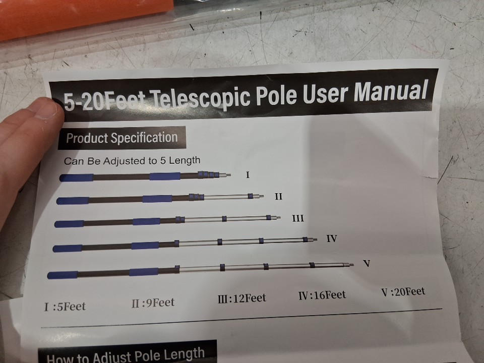 henk ADJUSTABLE telescopic pole lightbulb changer, 5FT-20FT, ORANGE/BLACK