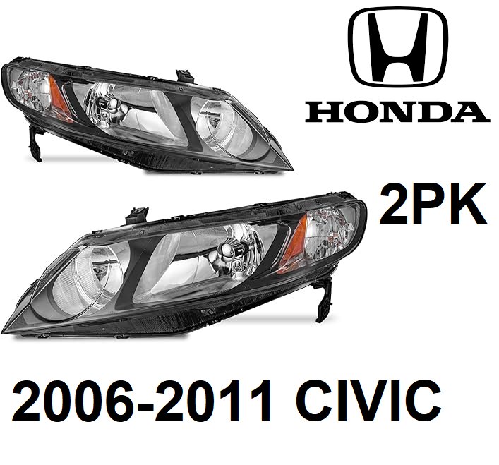 2pk karsparehub headlight assembly for 2006 to 2011 honda civics **for 4 door models only** - passenger and driver side - black (model: ksh-hdcv0606)