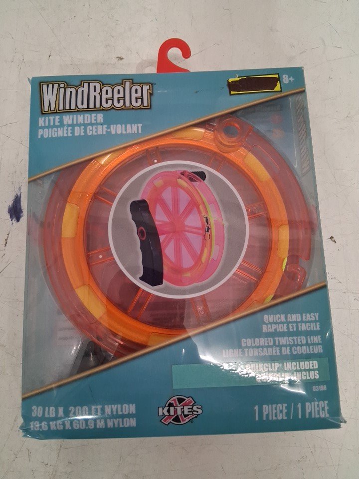X KITES WINDREELER KITE WINDER WITH COLORED TWIST LINE - 30LB X 200FT NYLON WIRE (ORANGE)