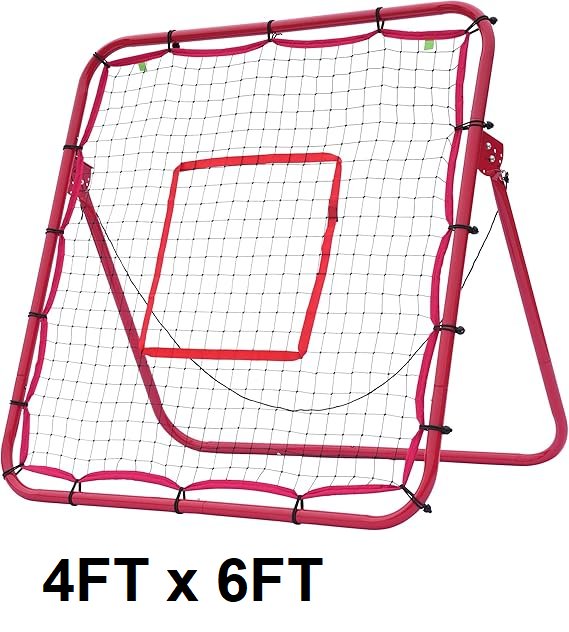 Adjustable Pitch Back Baseball Softball Lacrosse Volleyball Soccer Rebound Bounce Back Net with Strike Zone - 4ft x 6ft - red