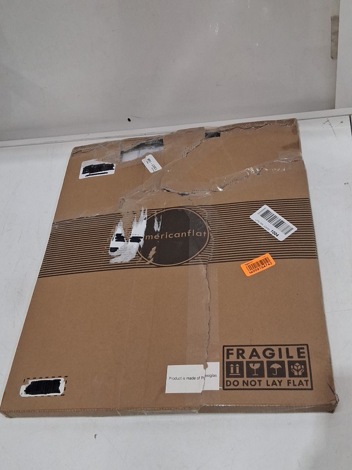 Item has a slight warp along the top edge however the acrylic appears intact and the clips appear functional, see photos.
