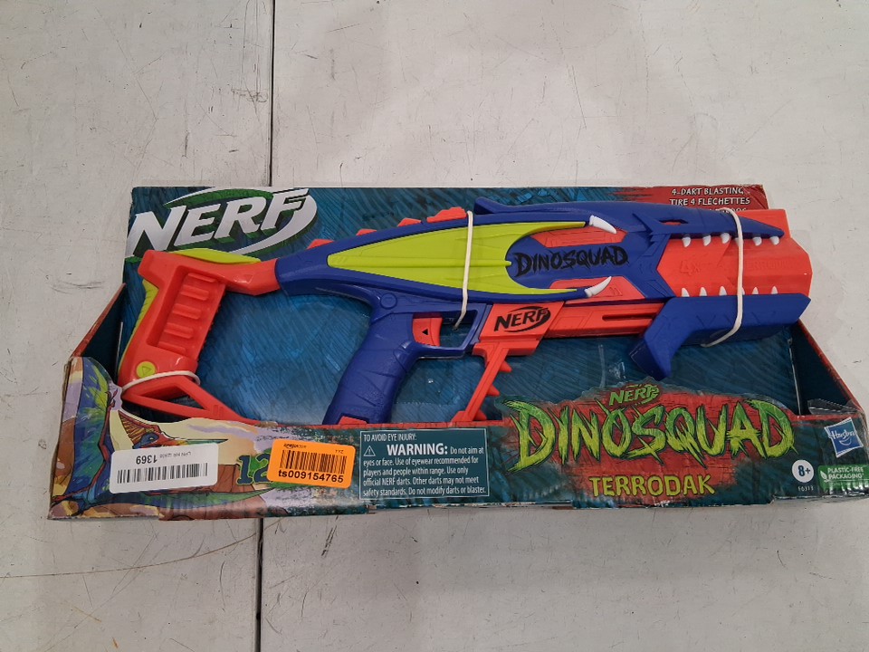 nerf dinosquad terrodak dart blaster with x12 nerf darts - blue, red, yellow - (model: f6313)