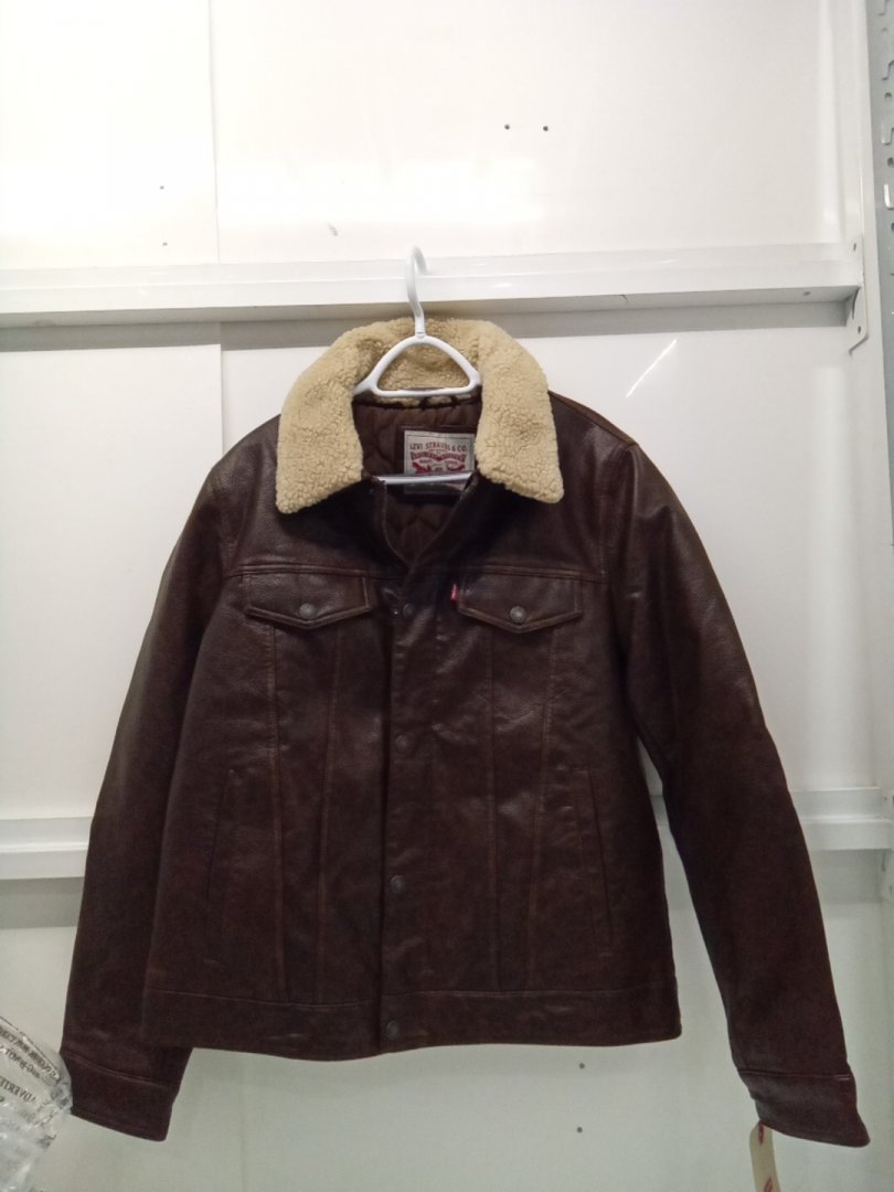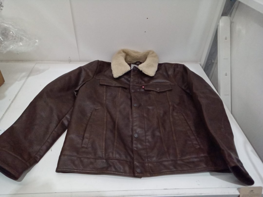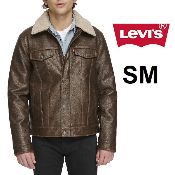 Men's Levi's Faux Leather Classic Trucker Jacket with Sherpa Collar - Small - Brown (Style: LM3RU545)
