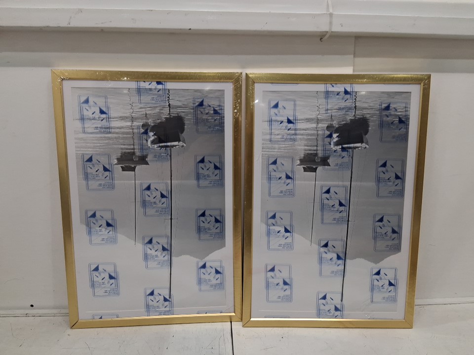 2pk American Flat picture frame - 12" x 18" frame 7.5" X 11.5" With mat - gold