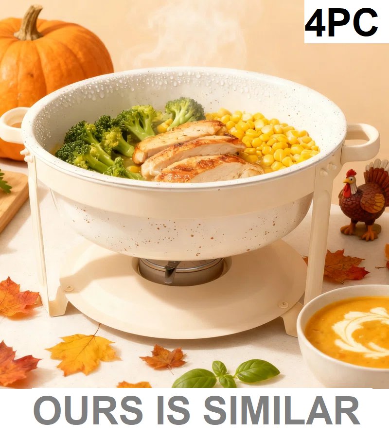 4pc round chaffing dishes with lids - 5.5qt - speckled gold/white