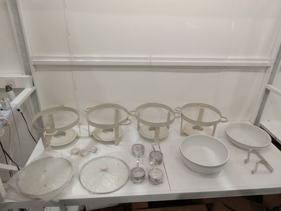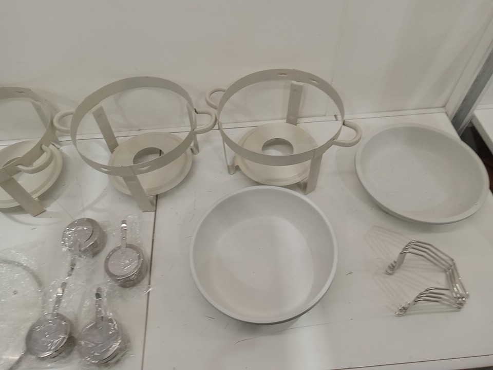 there are some scuffs and scratches to the bases of the chaffing dishes where in inserted bowls will sit, please see photos