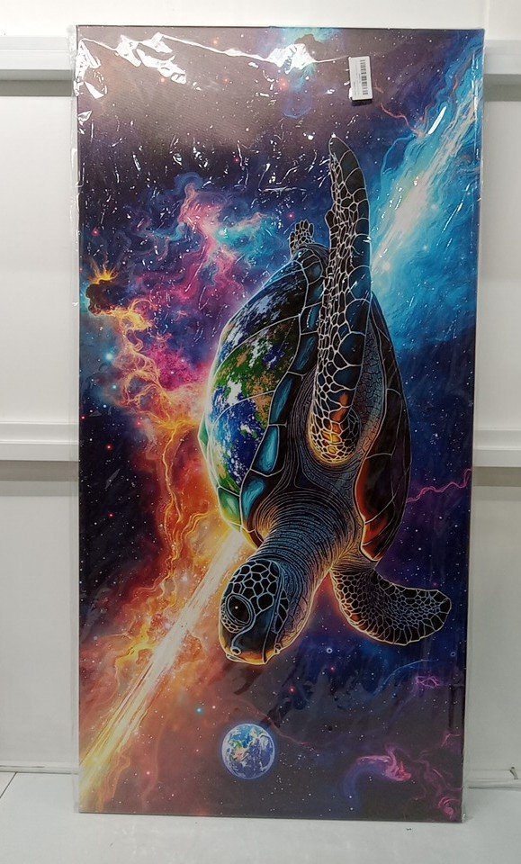 modern cosmic turtle framed canvas wall art - 24" x 48" - assorted colours