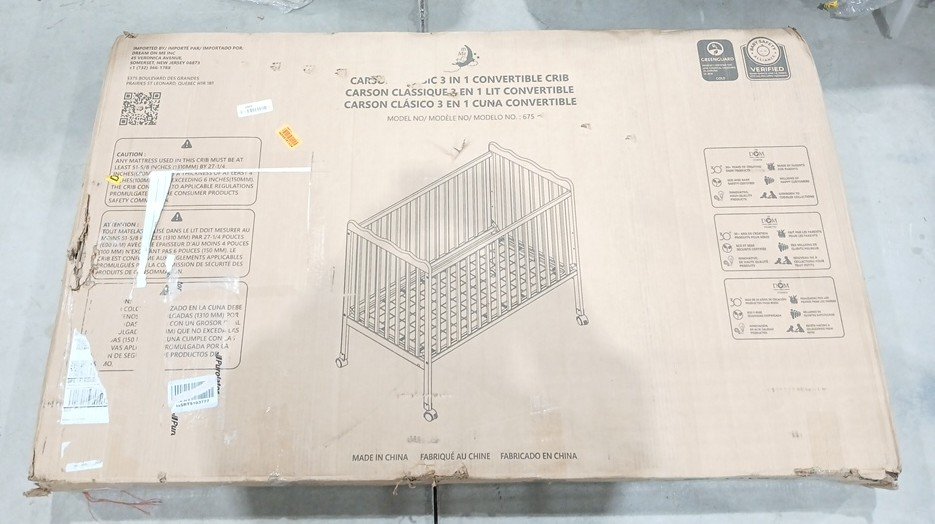 Dream On Me Carson Classic 3-In-1 Convertible Crib, with wheels - WHITE (model: 675-w)