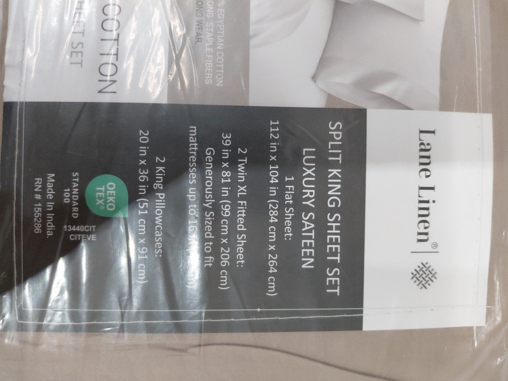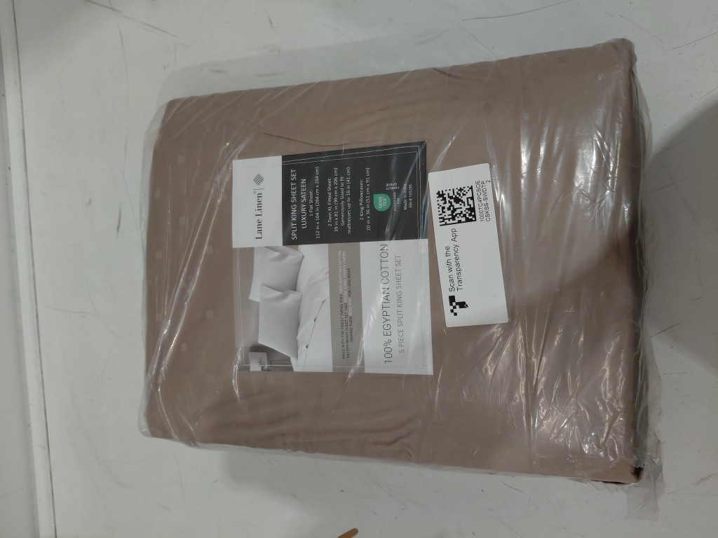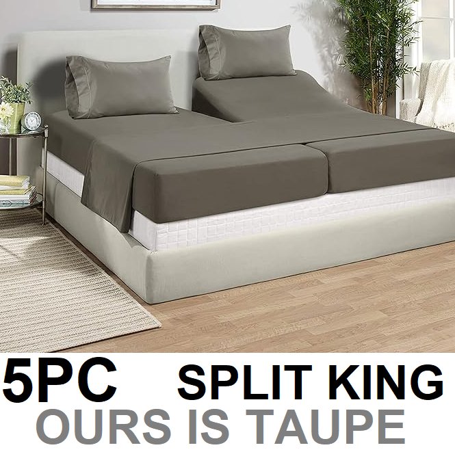5PC lane linen 100% Egyptian Cotton Sateen cool breathable sheet set - split king - TAUPE