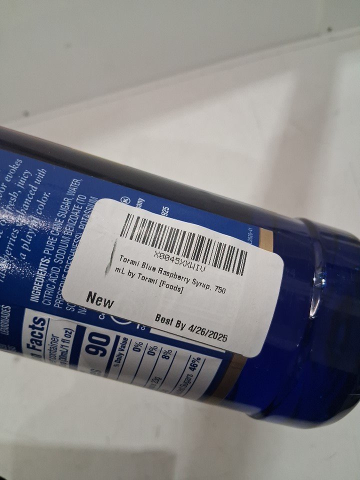 torani blue raspberry syrup bottle sugar free - 750ml