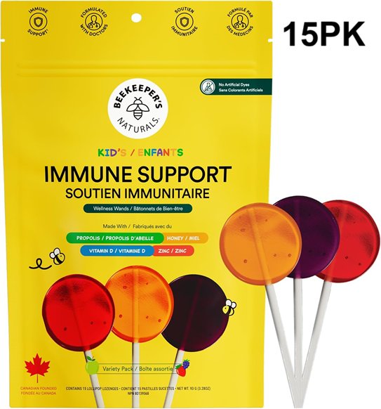 15pk beekeeper's immune support lollipops - strawberry, green apple, elderberry