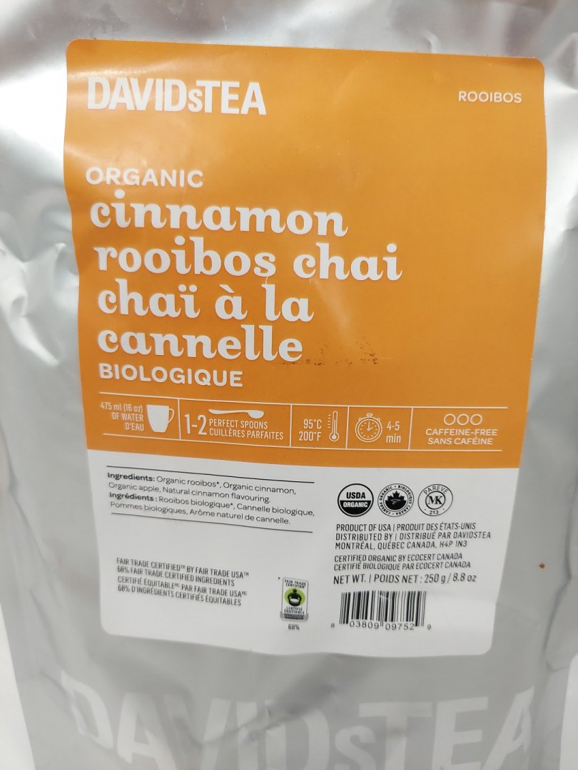 DAVIDSTEA ORGANIC CINNAMON ROOIBOS CHAI CAFFEINE FREE LOOSE-LEAF TEA - 250G