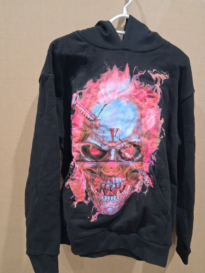 MENS vlone limited edition hoodie with pockets - medium-red flame skull