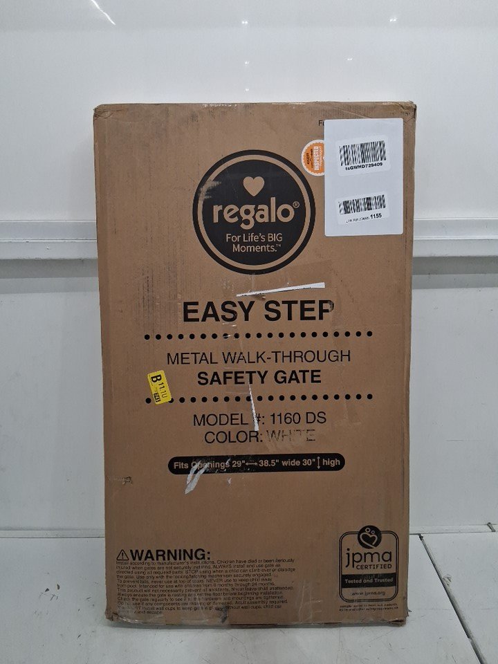 REGALO EASY-STEP METAL WALK-THROUGH SAFETY GATE - 30" x 29'' to 38.5'' - WHITE - (MODEL: 1160DS)