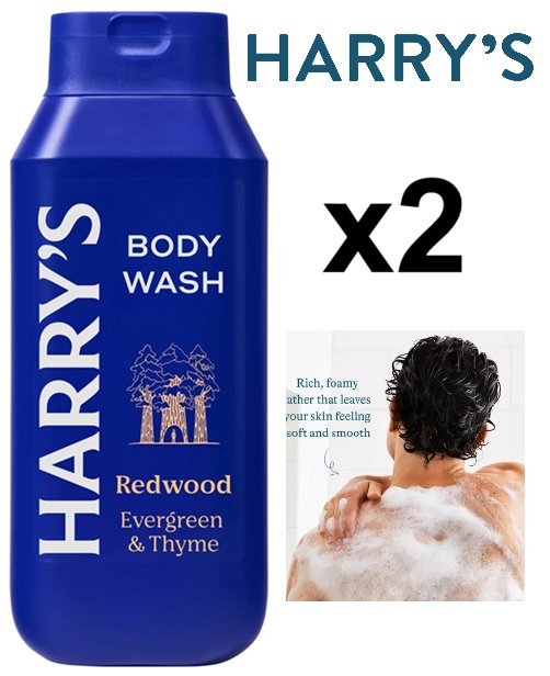 2 harry's body wash - redwood evergreen & thyme scent - 532ml/each